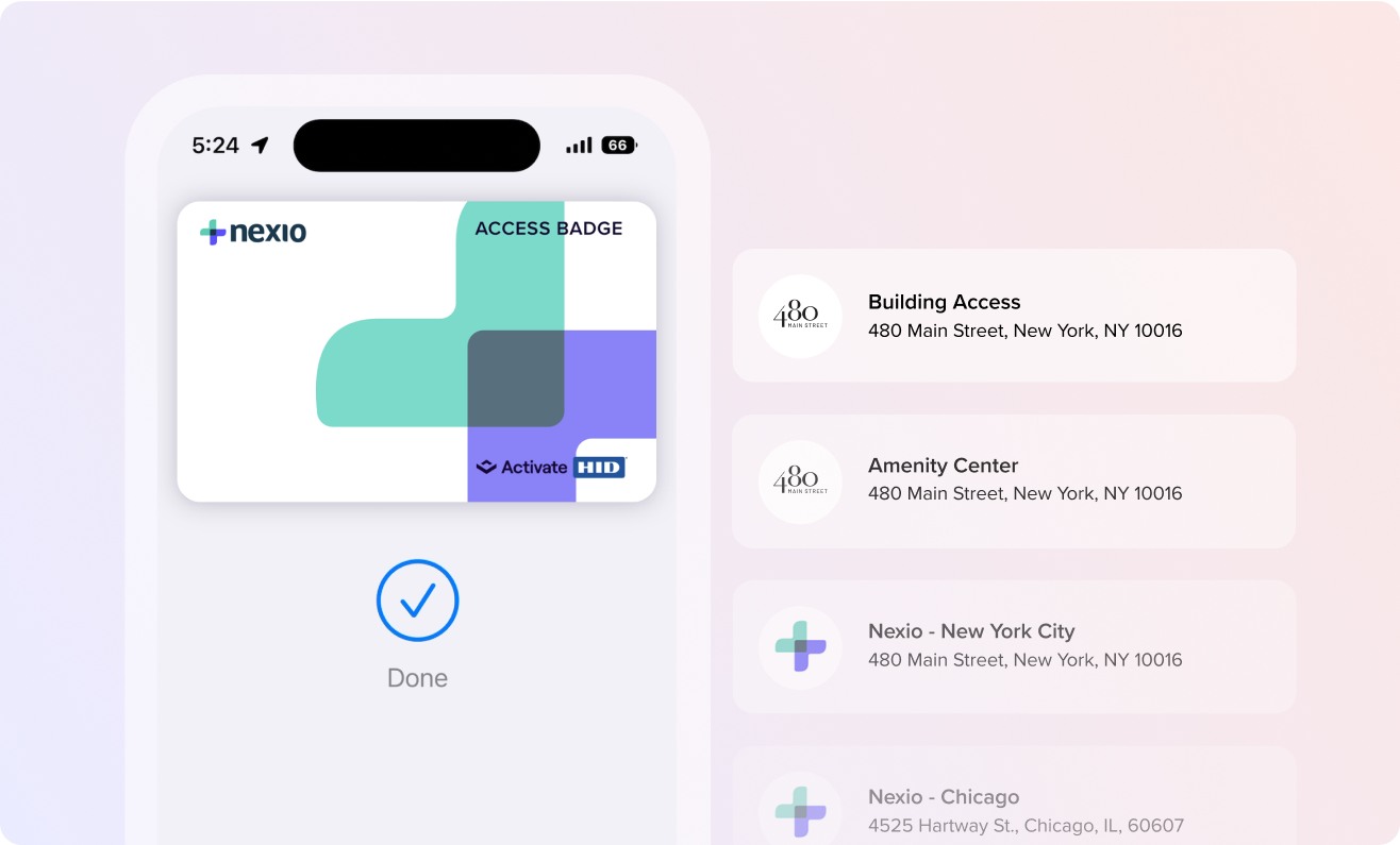 Store multiple credentials in your digital wallet for tap-and-go access in a building, shared spaces, at the suite, and now across buildings. Plus, visitors unlock turnstiles with QR passes.