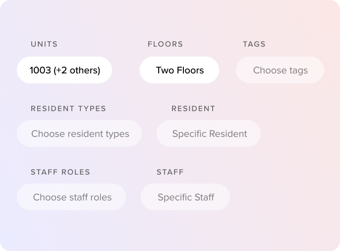 Enhanced targeting for communications, events, polls, and forms gets your message to the right groups, units, and floors within a building.